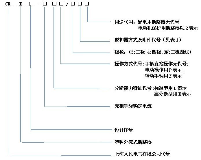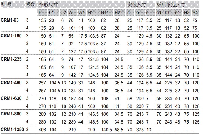 2、對CRM1-100、225二極產(chǎn)品只有210、310、220、320、230、330;對CRM1-63、100、225四極斷路器,N極為A型和D型時(shí)無240、340、360、260、268、368;