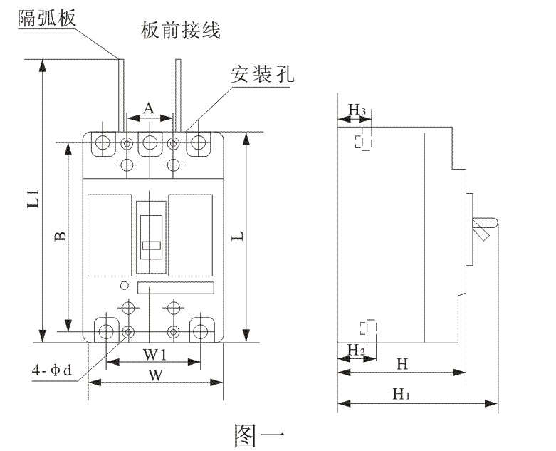 5.3?本系列斷路器飛弧距離為200mm,斷路器的進(jìn)線端應(yīng)用絕緣材料包扎200mm或用絕緣板把相間隔開。
