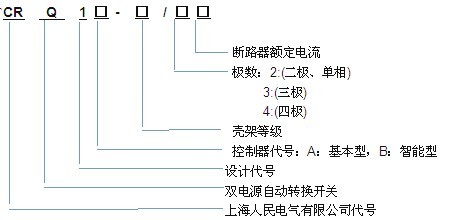 *產品名稱型號規格及數量 *如有特殊安裝條件或特殊場所使用需求,用戶提供相對應的技術資料或與公司協商。 訂貨舉例:(1)-63型,額定電流50A,四級,自投自復模式,一臺寫為:CRQ1-63/50A4P即可